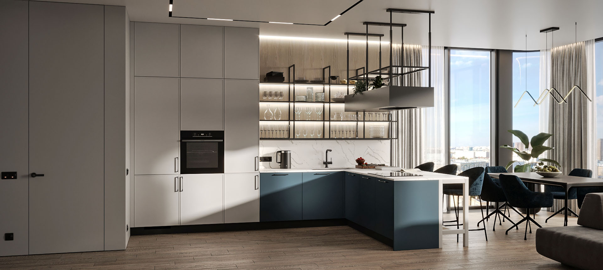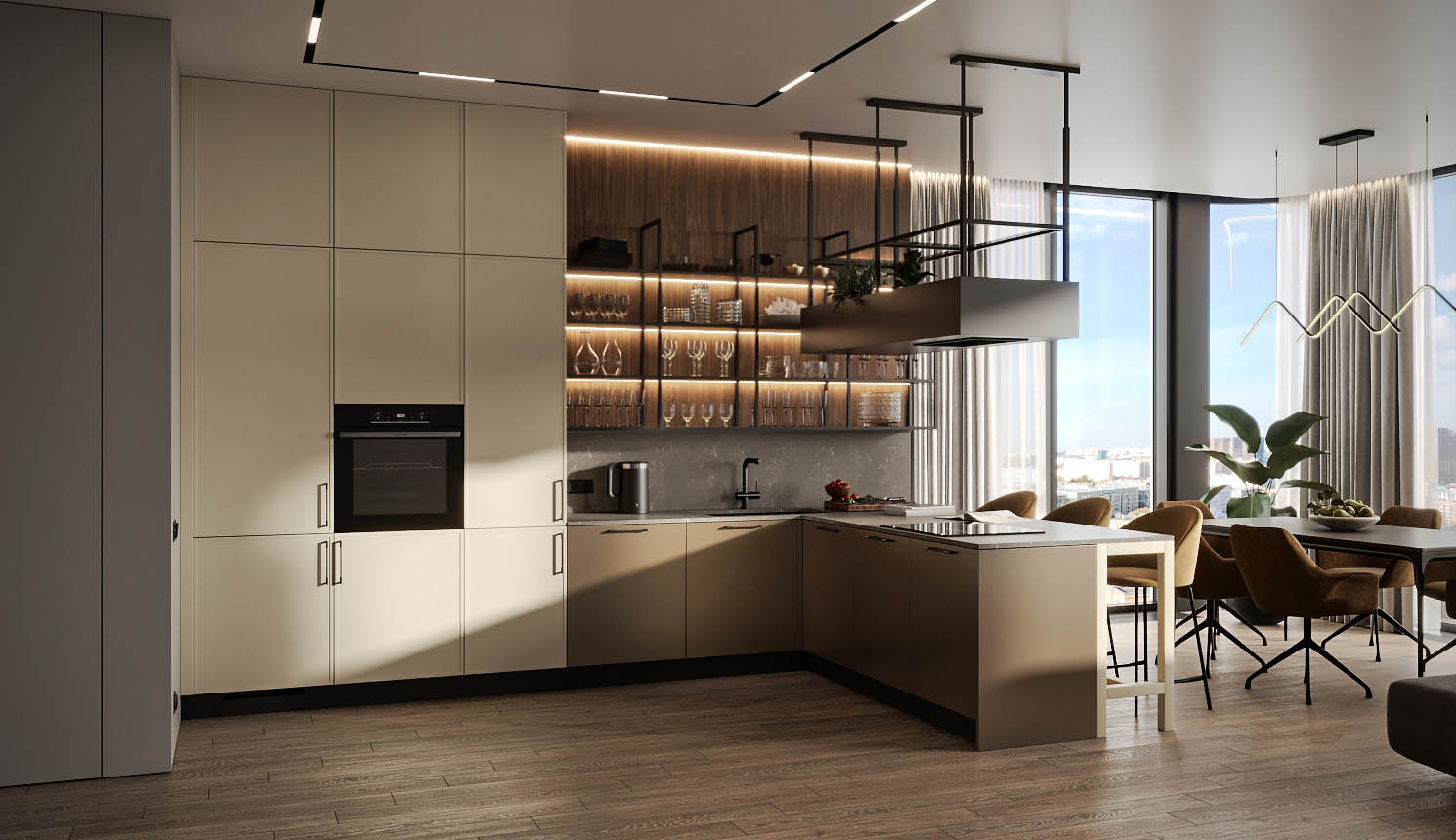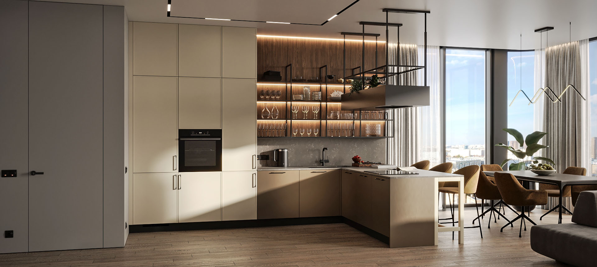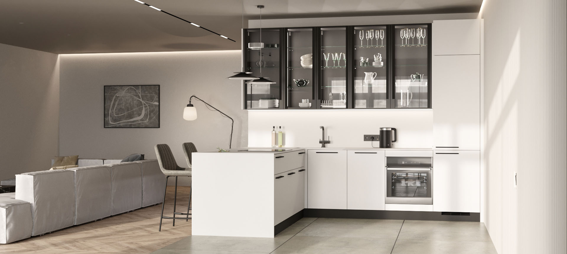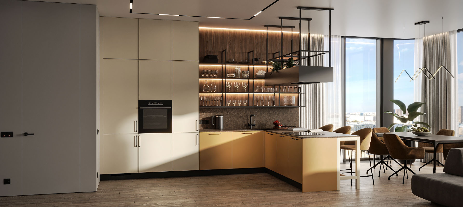 Кухня с барной стойкой в современном стиле