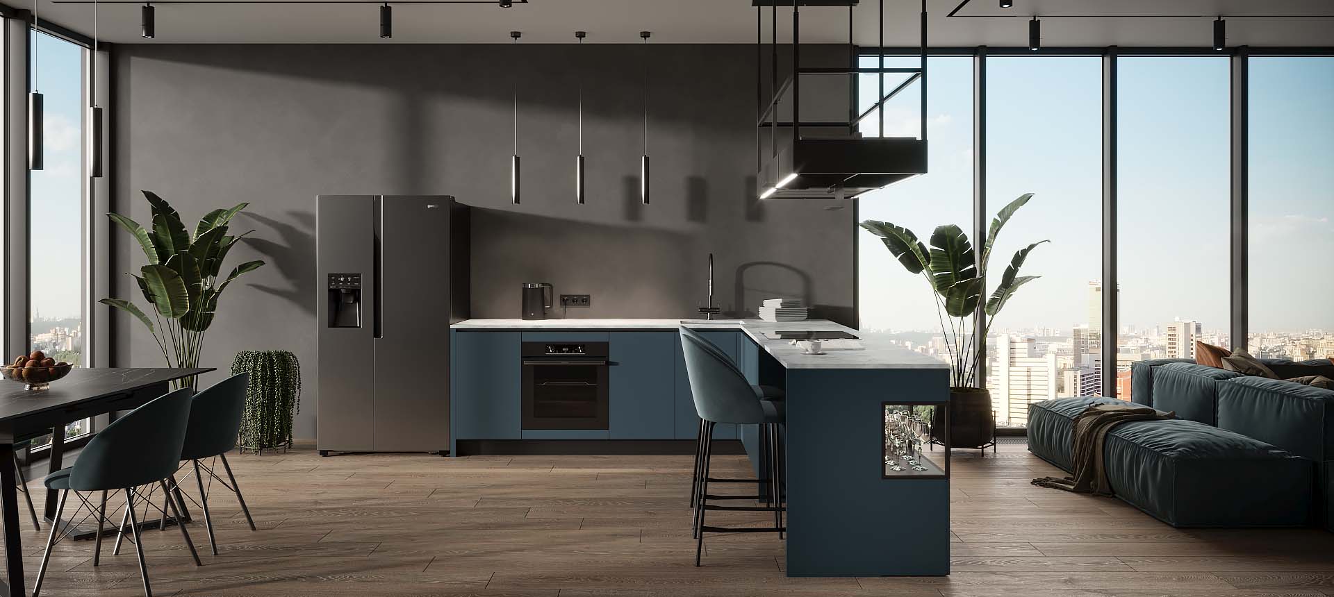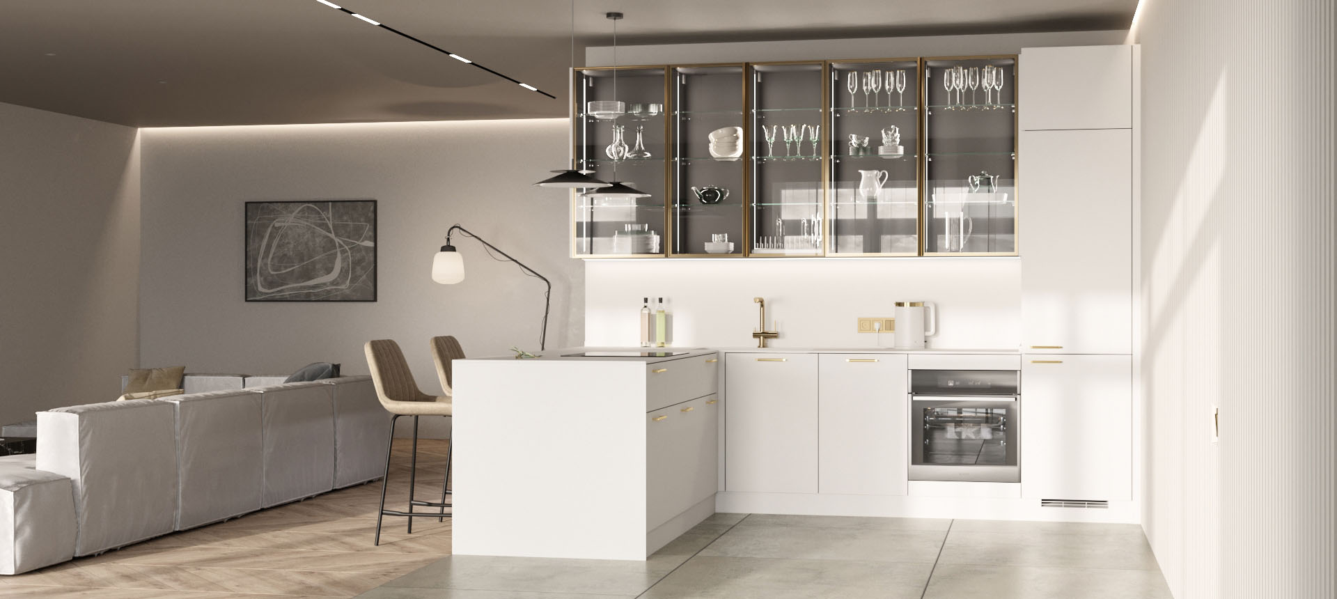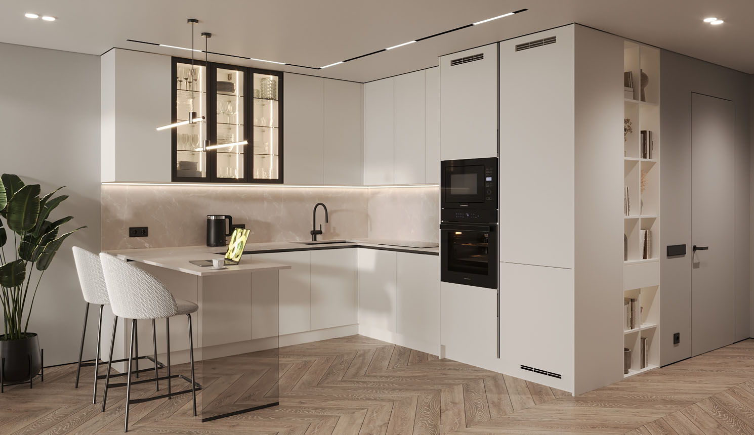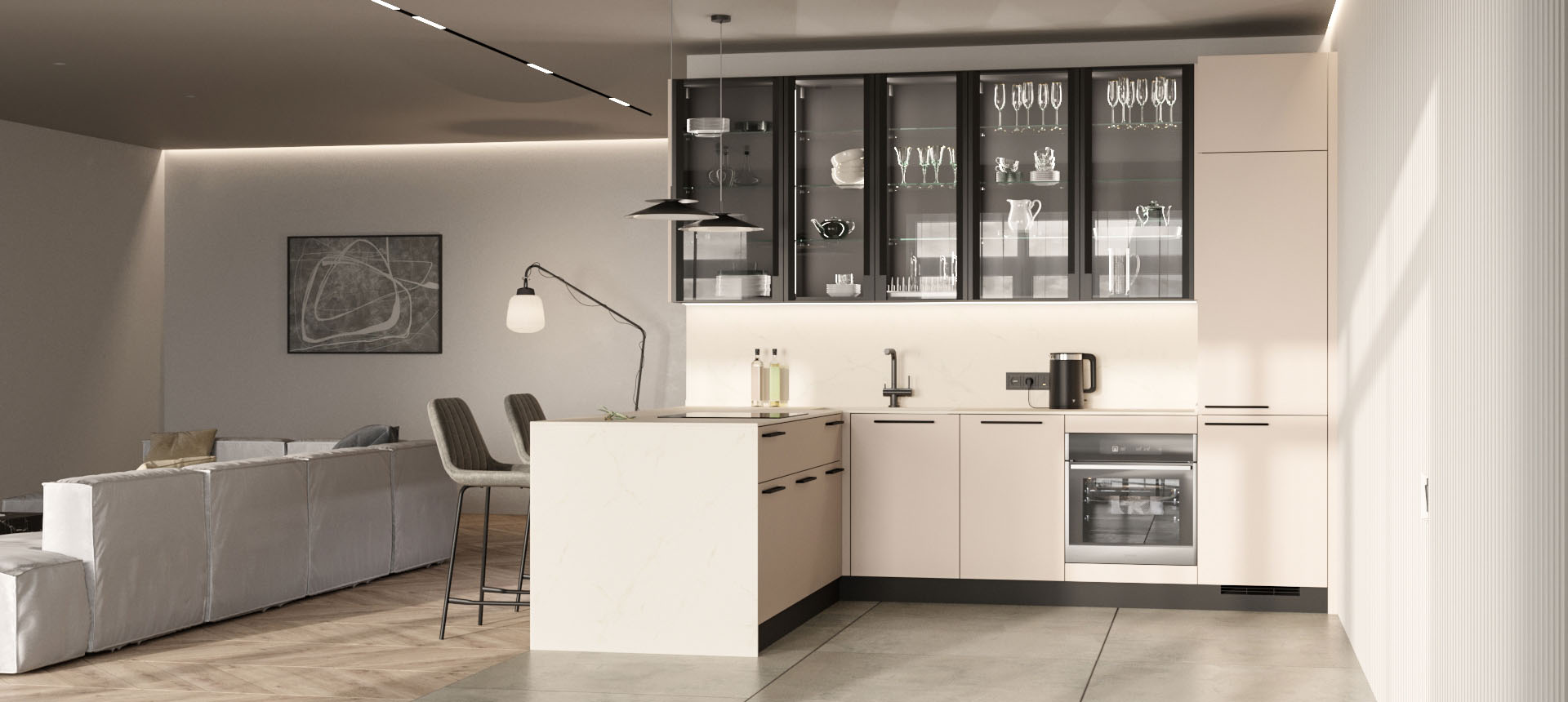 Кухня с барной стойкой в современном стиле