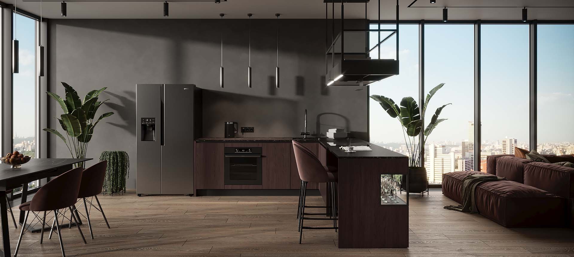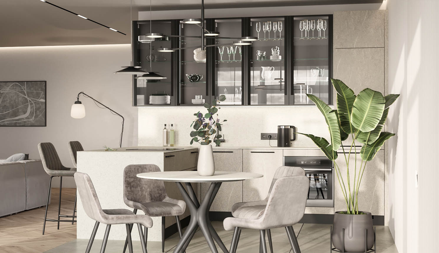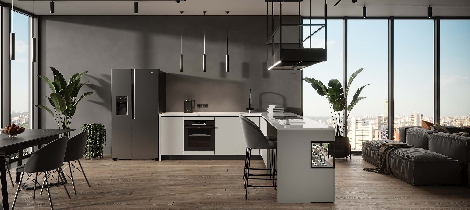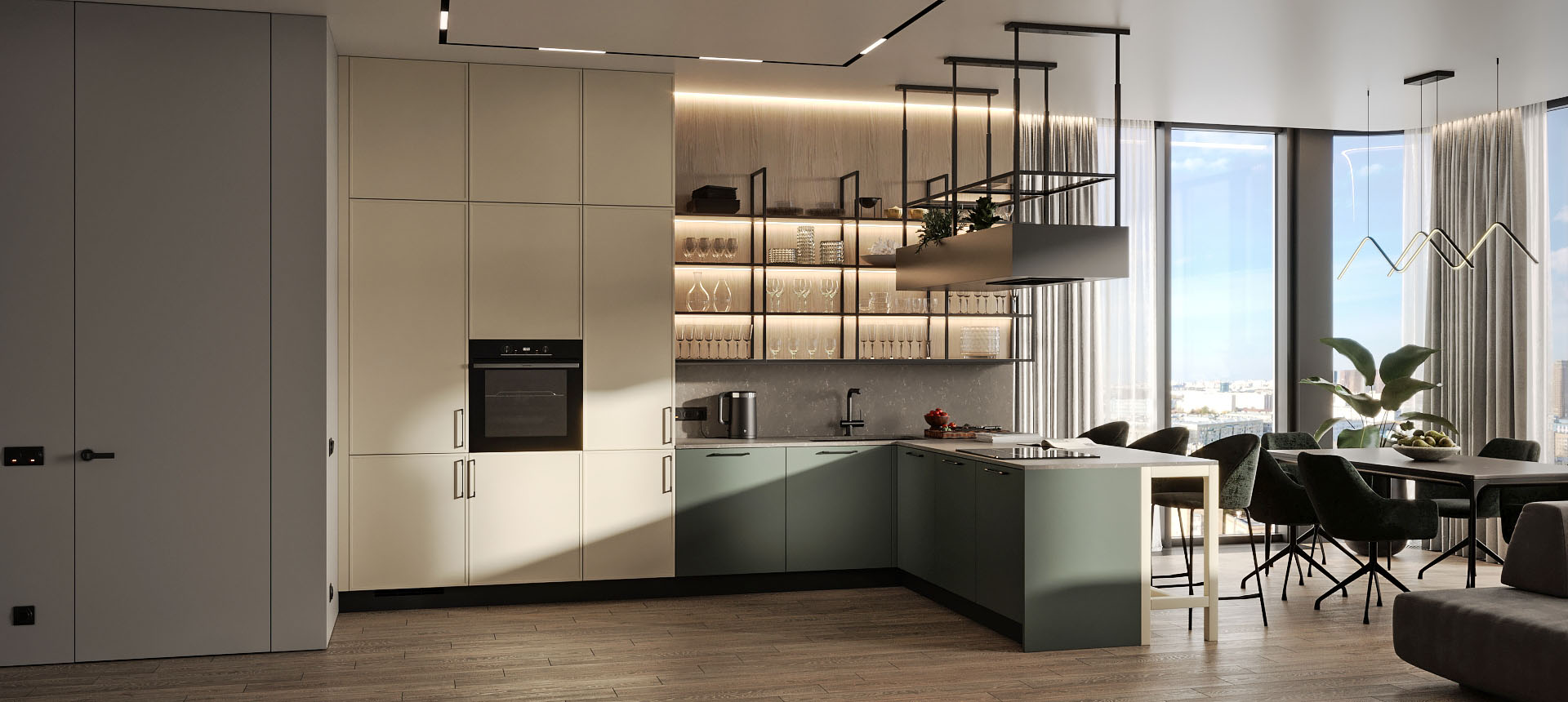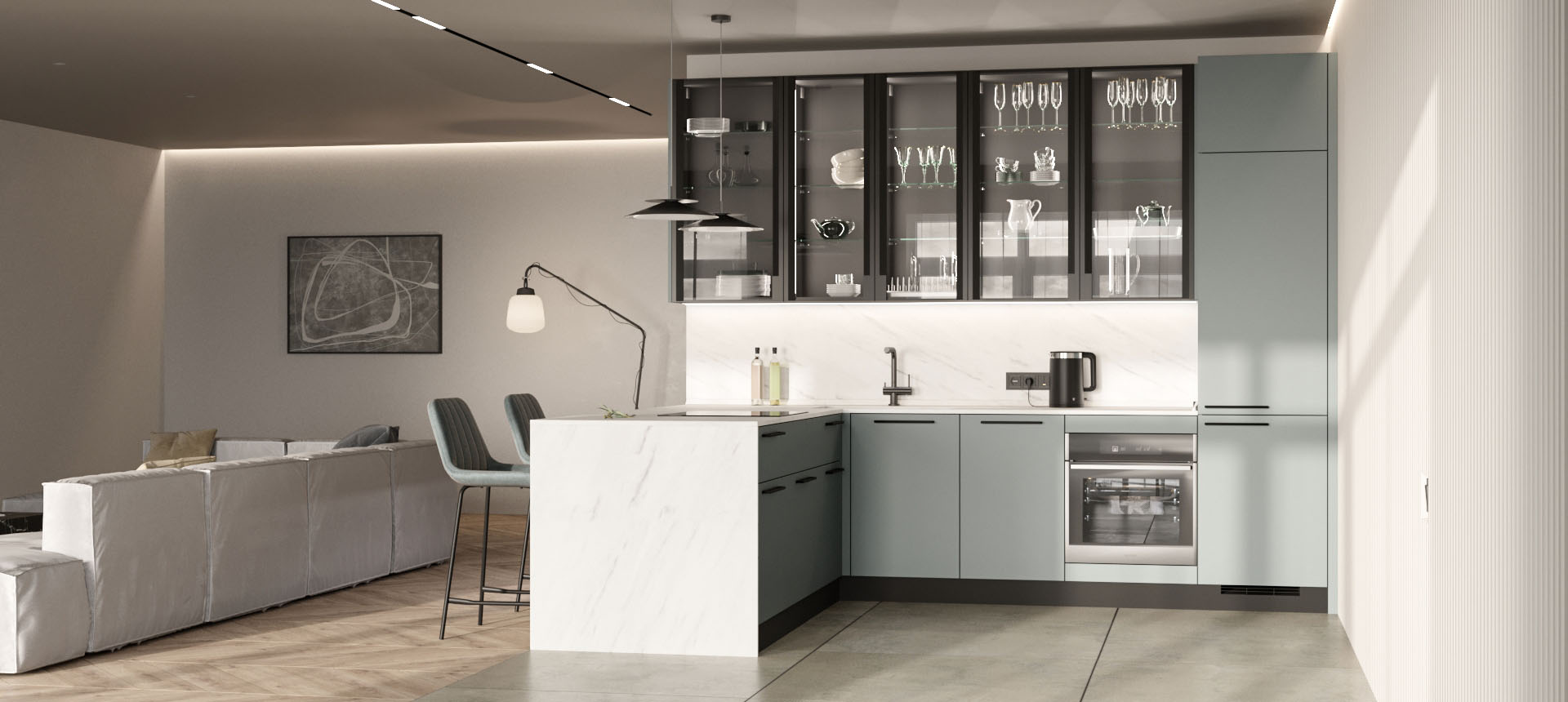 Кухня с барной стойкой в современном стиле