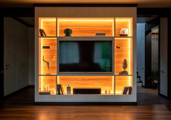 Дизайнер предусмотрела несколько сценариев освещения — функциональный свет и стилеобразующий - декоративный.