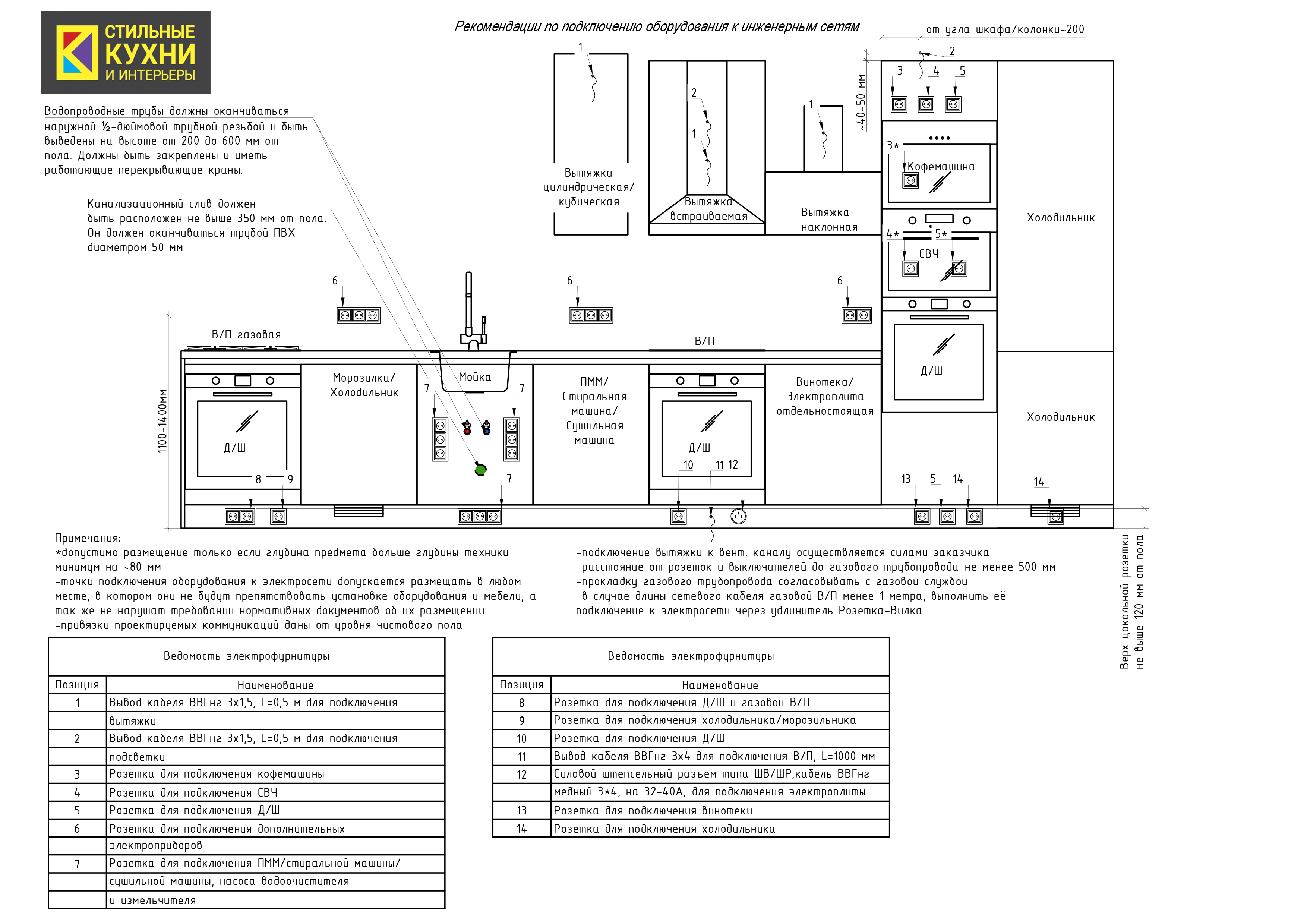 Для оптимального расположения точек подключения бытовой техники, нашими специалистами разработаны рекомендации по подготовке помещения.